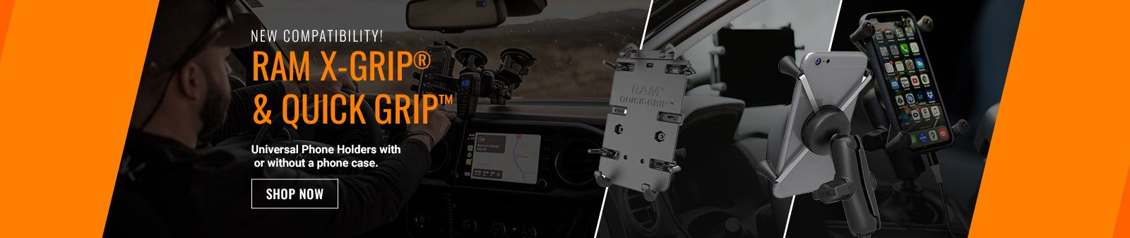 As an authorized RAM Mount Partner, we carry the complete catalog that RAM has to offer. These mounts are made from premium materials and feature a patented ball-and-socket construction that absorbs shock and minimizes vibration, all while holding your device in place. Some mount options offer rubber grips or a rubber tether to further secure your device while off-road.