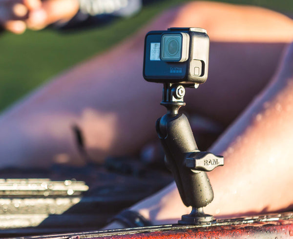 Grip ‘N Grin culture is strong among anglers in a kayak or boat. Don’t miss a moment—replace the factory mounting bracket of your favorite action camera with the RAM® Universal GoPro Adapter and document the catch. The rubber ball design dampens shock and vibration to help extend the life of your camera while getting a smooth shot. Take advantage of RAM® mounting solutions like extension poles as well as suction cup and U-bolt bases for nearly any mounting location on any vessel.