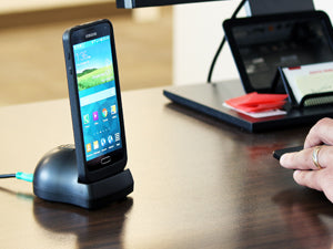 IntelliSkin® is a protective device case that features an integrated power connector compatible with any GDS® charging dock. This prevents damage to the device charging port and creates a universal docking platform compatible with any device wrapped with an IntelliSkin® case.