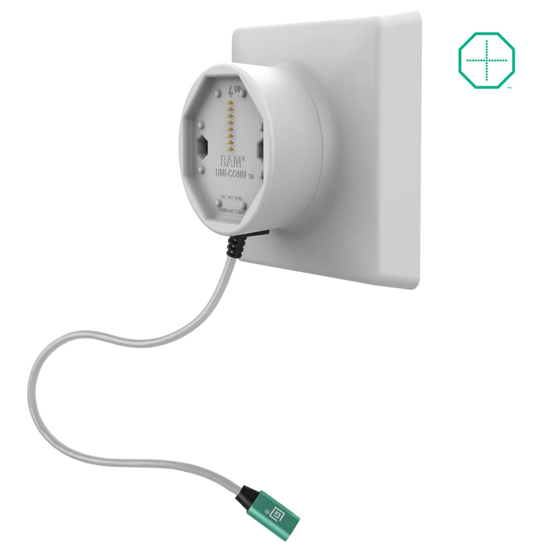 The GDS® Uni-Conn™ Powered Dock with USB-C & VESA Adapter (RAM-GDS-DOCK-D10V-C-GRY) is a powered dock with 100x100mm & 75x75mm VESA hole patterns, ideal for upgrading monitor stands to an interactive and mobile device solution such as medical carts, floor stands, and more. GDS® Uni-Conn™ powered docks require devices to be enclosed in an IntelliSkin® Thin-Case™ with Rear Pogo Pads.