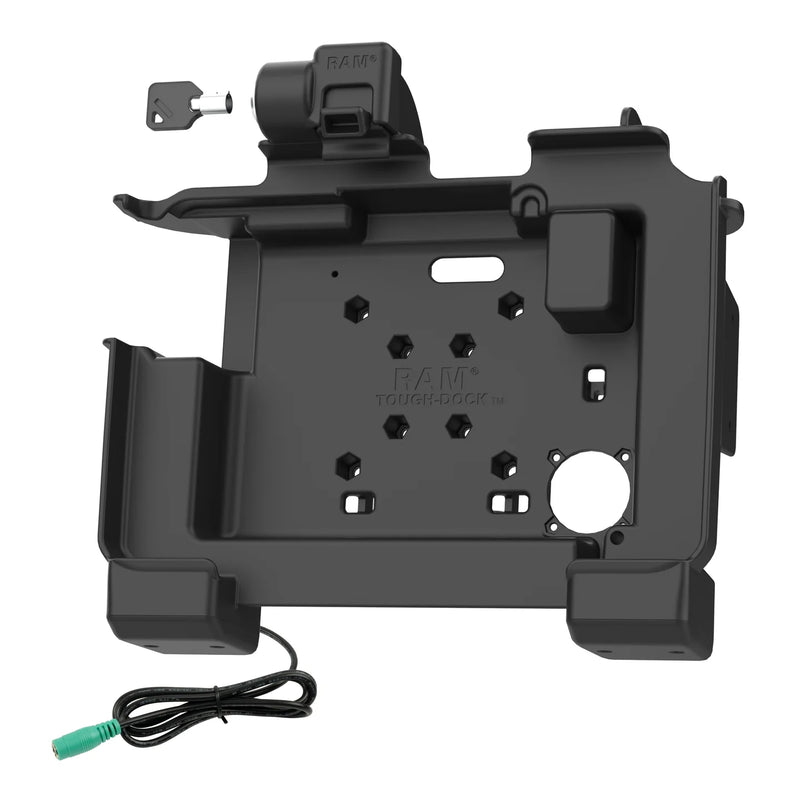 ( Chat Live to get an ETA ) $410.49 This key-locking powered RAM® Dock (RAM-HOL-ZE25PHLU) features a form-fitting design specifically for the Zebra ET60 & ET65 tablets. This dock has built-in heating elements that provide the necessary heat required to prevent pogo pins from locking up, allowing them to operate in wet and freezing environments. Charging capabilities are provided by a 5.5mm DC barrel pigtail connector and built-in pogo pin docking contacts for a seamless charging experience. Special for this dock is a new self-aligning docking pad that surround the pogo pins and conform to the tablet when seated in the dock to provide optimal contact, and prevent damage to the pins. Made for versatility out in the field, this dock supports the device with or without the attachable Zebra keyboard and features a unique 2-in-1 latch that both secures the tablet, and allows the keyboard to open and close independently. Additionally this dock is accessory-ready, compatible with the RAM® Vent-Temp™, RAM® Temp-Right™, RAM® NFC Reach™, as well as two small device mounting areas on both the left and right side of the dock. The cut out on the left side of the dock allows for easy access to the Zebra CAC reader with the ability to open and close the CAC reader door. Finish the solution by building your mount. These docks are RAM® Compatible™ equipped with 75mm VESA, or 4-hole AMPS patterns for adding a ball adapter. Take advantage of thousands of RAM® mounting components to configure the perfect ET60/ET65 solution. These thoughtfully designed features enable mobile workforces widely spread across industries in colder climates including cold storage warehousing, fixed vehicle docking in commercial transportation, and utility services in subzero environments. FEATURES Key-Locking form-fit powered dock designed specifically for the Zebra ET60 & ET65 tablets; compatible with or without Zebra keyboard featuring unique 2-in-1 latch that secures the ET60/ET65 while allowing the keyboard to open and close freely Charging capabilities provided by 5.5mm DC barrel connector and built-in pogo pin docking contacts for a seamless charging experience; pogo pins feature self-aligning docking pads that conform to the seated device Heating elements provide the necessary heat required to prevent pogo pins from locking up, allowing them to operate in wet and freezing environments. Add-on accessory compatible including RAM® Vent-Temp™, RAM® Temp-Right™, RAM® NFC Reach™, as well as two small device mounting areas on both the left and right side of the dock; dock also includes cut out on the side of the dock giving access to the Zebra CAC reader with the ability to open and close the CAC reader door Backed by a 3-year warranty HARDWARE INCLUDED HOLE PATTERN MATERIALS INPUT CONNECTOR INPUT CABLE LENGTH Zebra ET60 ET65 Instructions Documents